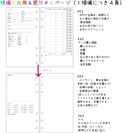 複雑になりがちな項目を一括管理、1年後にはその年どれだけドルヲタ生活を楽しんだのかひと目でわかる思い出アルバム的な存在、自担との思い出をこの手帳に。